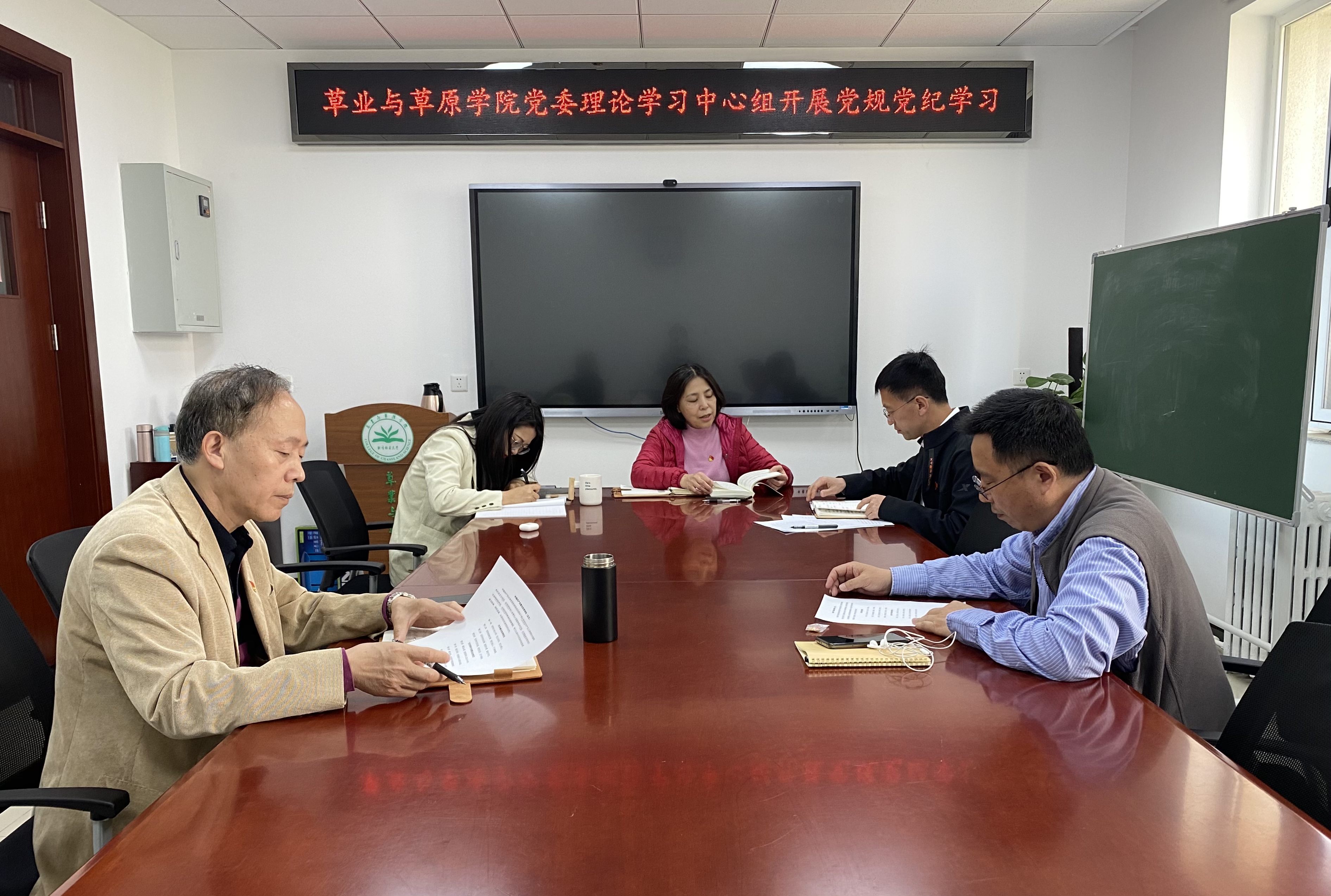 2021年4月8日,草业与草原学院党委理论学习中心组开展党章党规党纪专题学习。学院党委理论学习中心组全体成员参加,学院党委书记苏静主持。