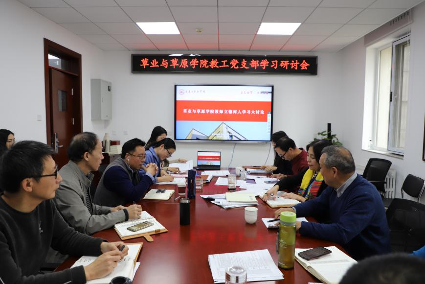11月26日,学院教工党支部组织全体党员采用线上线下将结合的方式召开立德树人学习研讨会,全面贯彻新时代党的教育方针,落实立德树人根本任务,草业与草原学院全体党员参加会议。