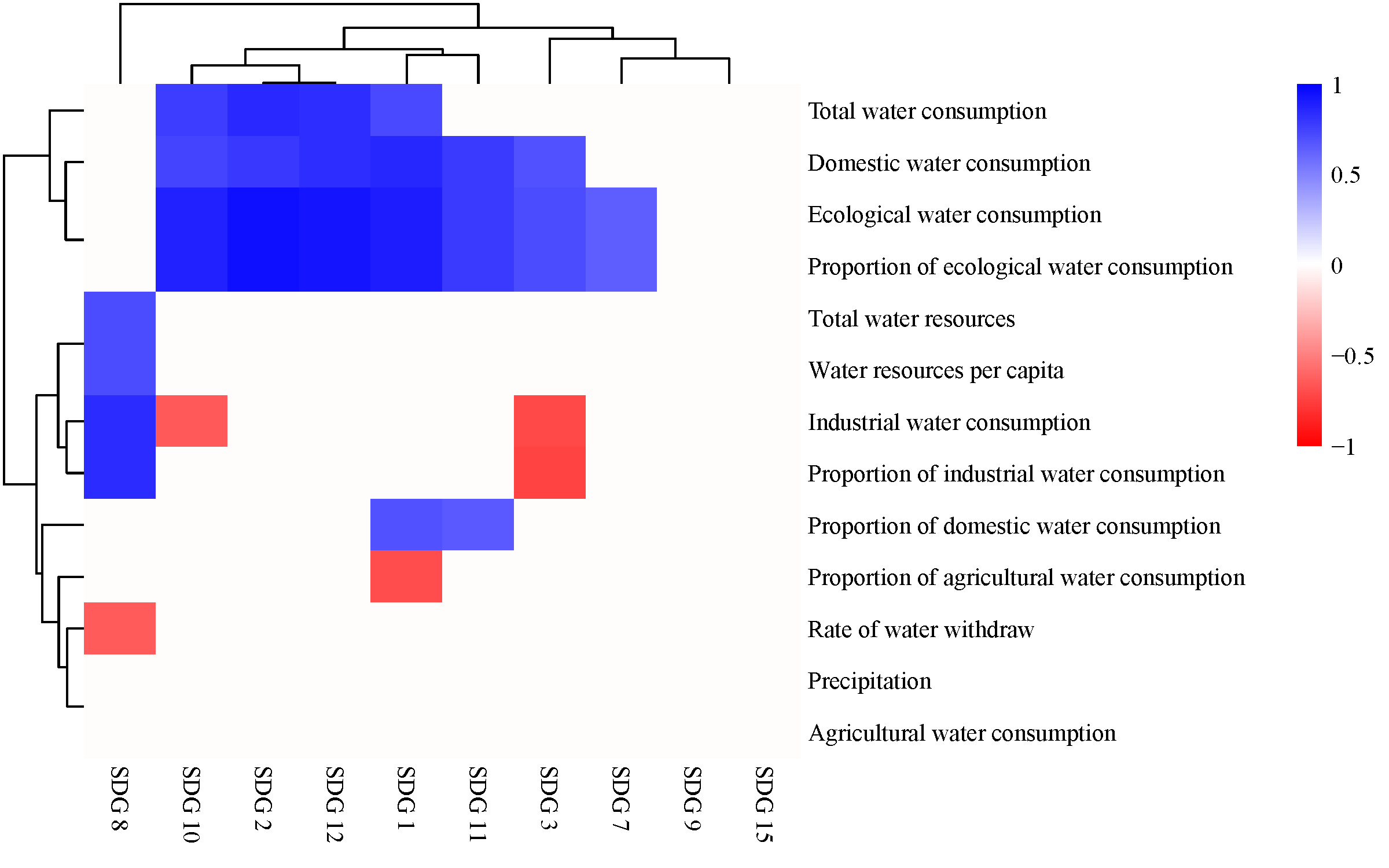 图2 内蒙古水资源相关指标与可持续发展目标关系的聚类分析