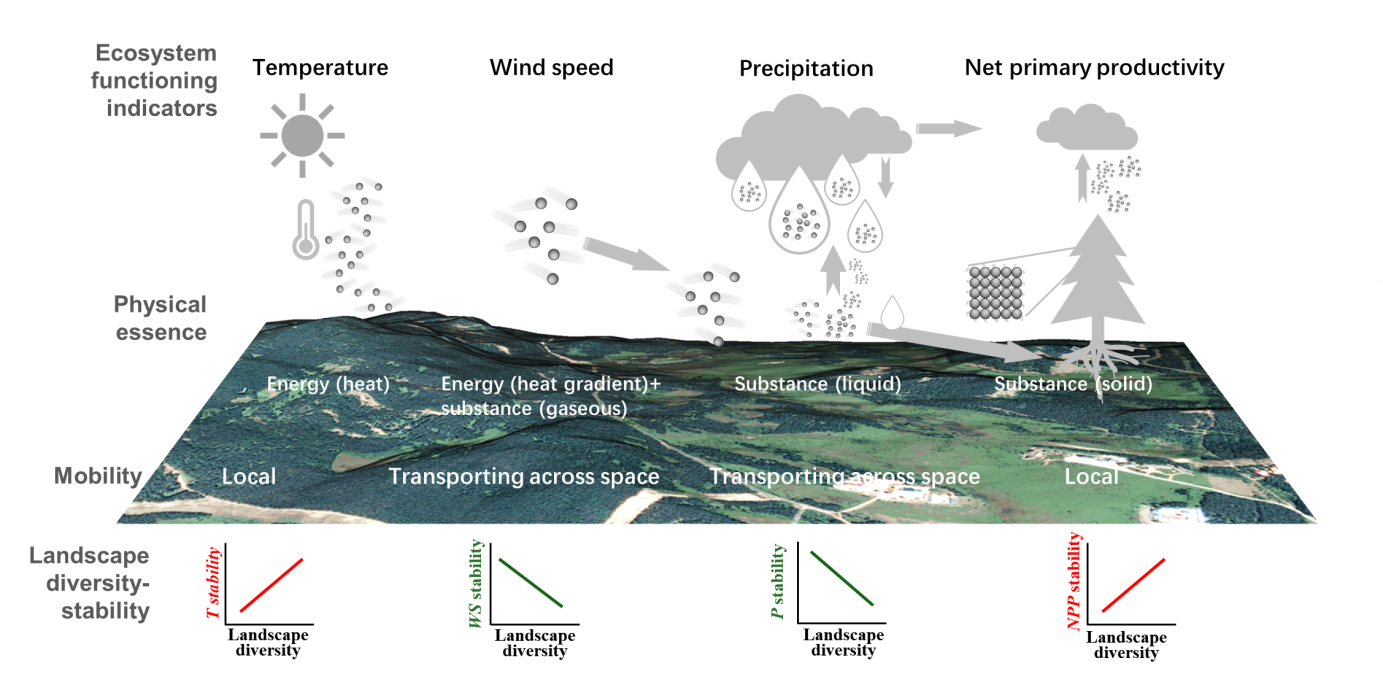 图3 研究主要结论与讨论:景观多样性与生态系统区域气候要素及初级生产力稳定性关系