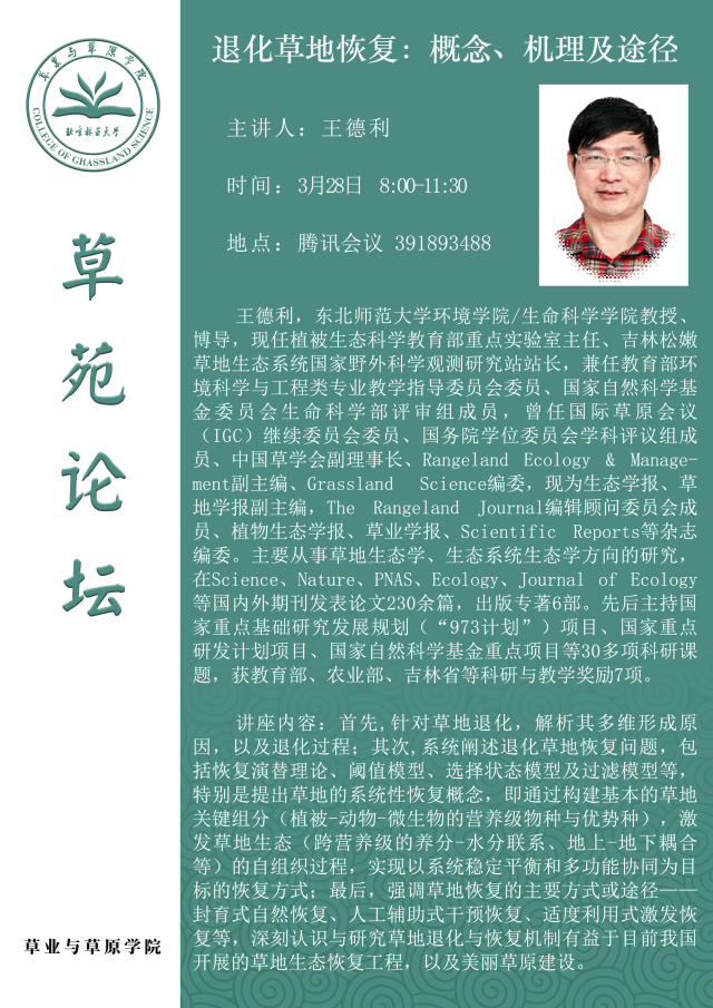 草苑论坛——退化草地恢复:概念、机理及途径