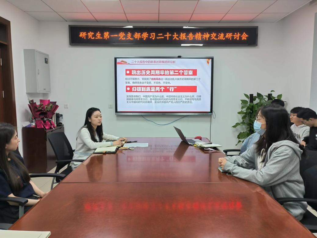 研究生第二党支部党员宋晴谈到,党的二十大,是在进入全面建设社会主义现代化国家新征程的关键时刻召开的一次十分重要的大会,在二十大的会议报告上,习近平总书记对我们青年人寄予厚望,寄语我们广大青年“怀抱梦想又脚踏实地,敢想敢为又善作善成”。作为一名新时代青年,我将在未来的学习、工作、生活中,发挥好榜样带头作用,引领更多青年朋友在这个奋斗者的时代中自信自强、一步一个脚印的走下去。