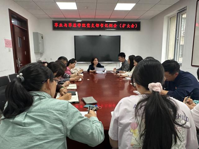 5月4日,草业与草原学院召开党支部书记工作例会(扩大会),对学院基层党支部学习贯彻习近平新时代中国特色社会主义思想主题教育工作做了具体安排。学院党委书记、教工和学生党支部书记、支部委员参会,会议由学院党委书记苏静主持.